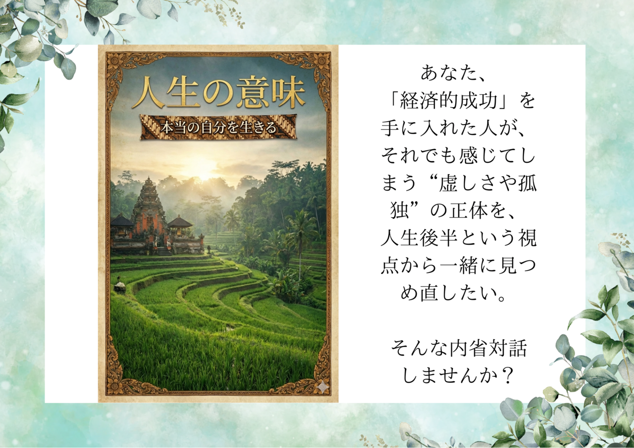 「経済的成功」を手に入れた人が、それでも感じてしまう“虚しさや孤独”の正体を、人生後半という視点から一緒に見つめ直したい。